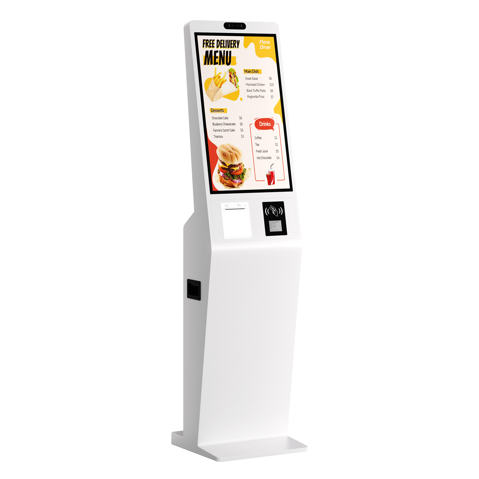 High-Performance Android/Windows Self-Service Kiosk with QR Code & Credit Card Payment | Slim Digital Signage Ordering Terminal