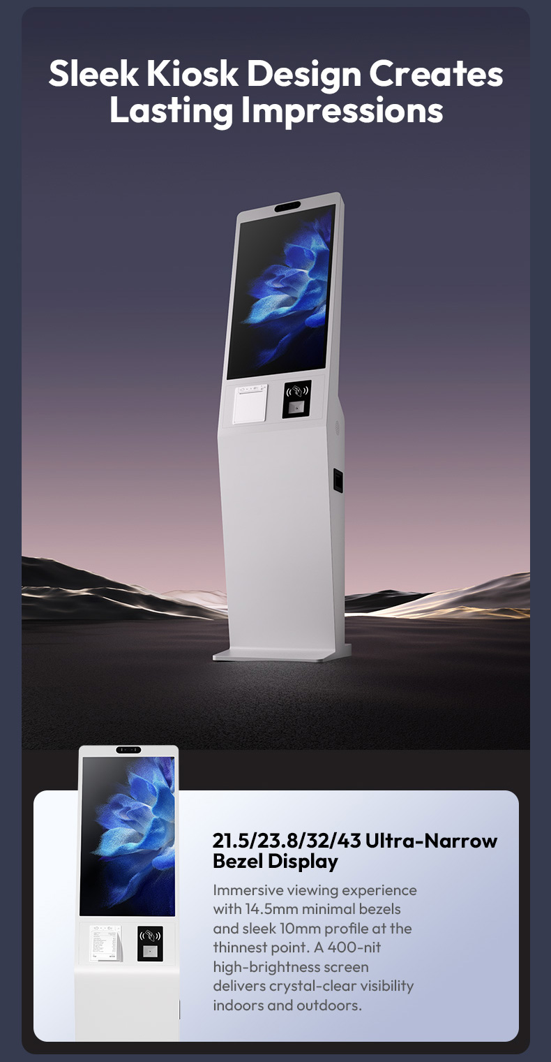 21.5"/27"/32" Interactive Self-Service Ordering Kiosk | Slim Digital Signage for Restaurant & Retail