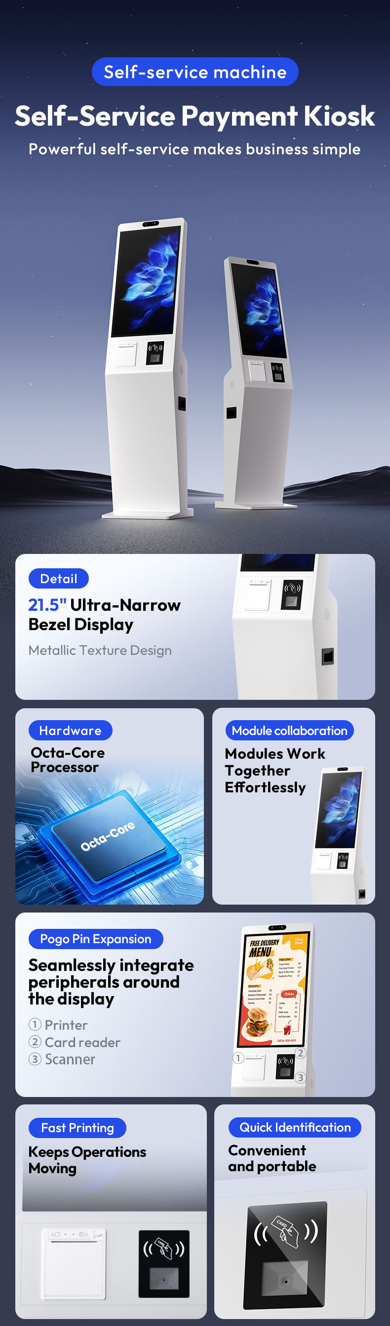 21.5" Android Self-Service Ordering Kiosk with Built-in Printer and Scanner - Interactive Touch Screen Food Ordering Machine for Restaurants & Retail