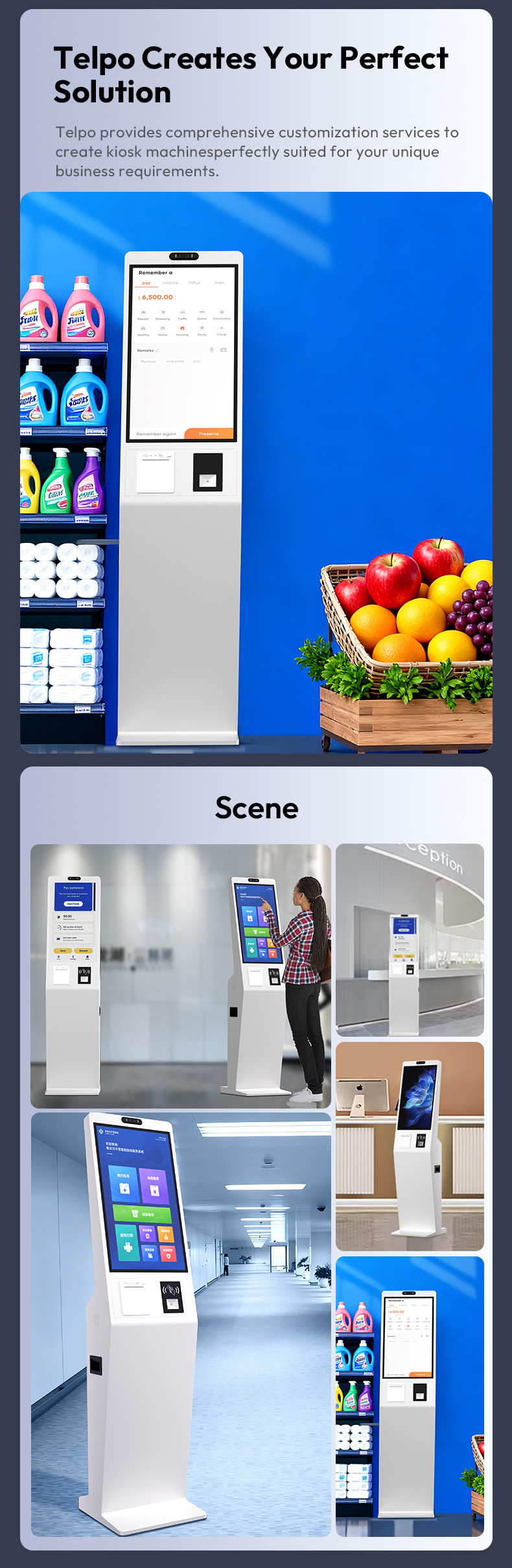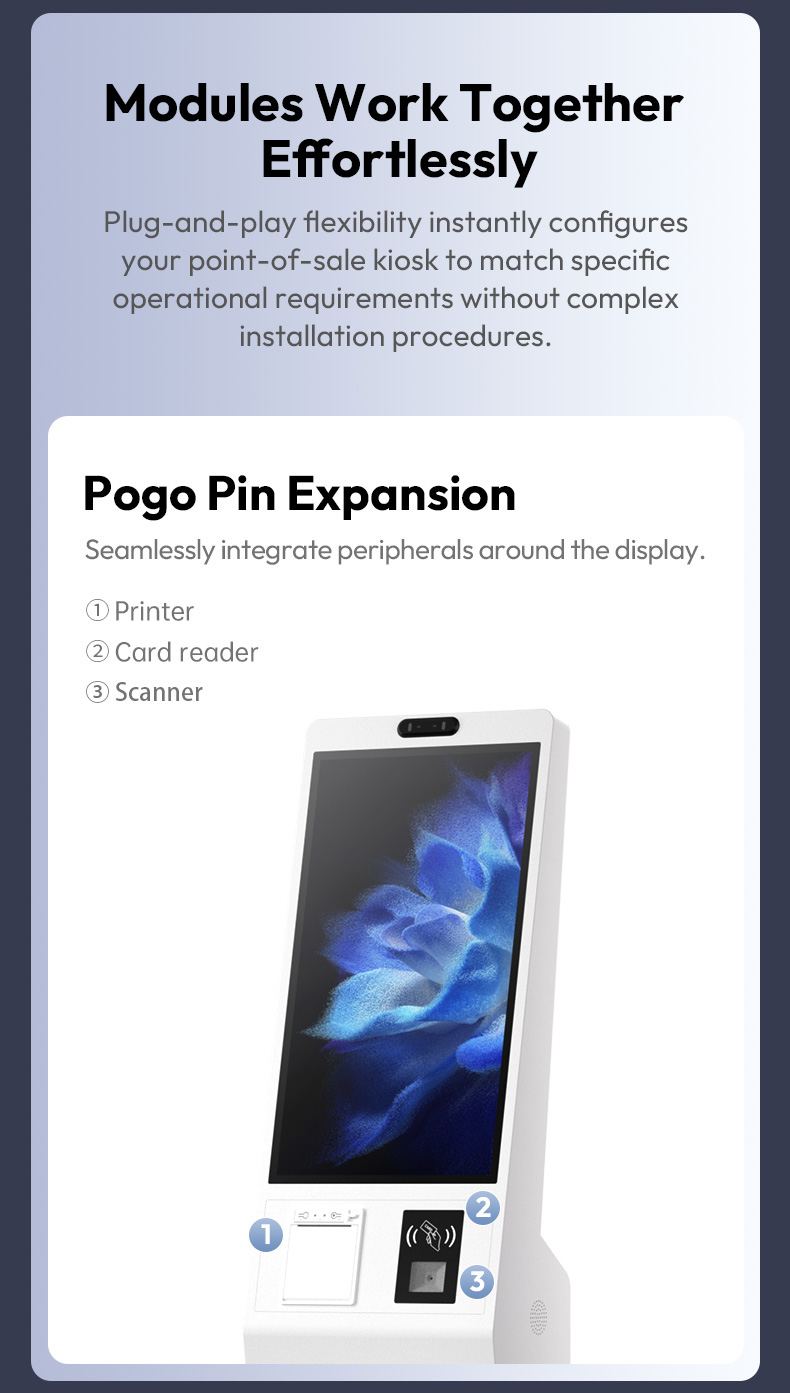 As a leading ISO 9001 & ISO 14001 certified manufacturer, we offer a robust hardware solution featuring a high-definition Capacitive Touch Screen and an optional Dual-Screen setup for enhanced digital signage and advertising. The integrated 150mm thermal printer and 2D barcode scanner ensure a seamless, contactless checkout experience.