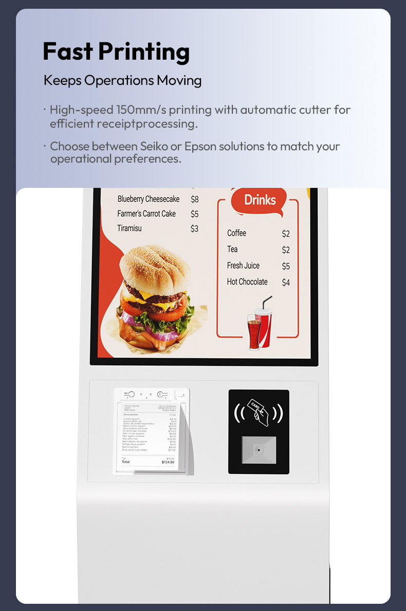 Transform your business efficiency with our latest Slim Self-Service Ordering Kiosk.